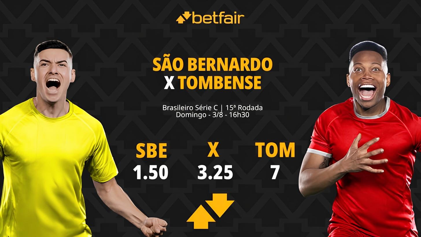 As cotações indicam favoritismo para o São Bernardo (1.80), seguido pelo empate (3.40) e pela vitória do Tombense (4.50).