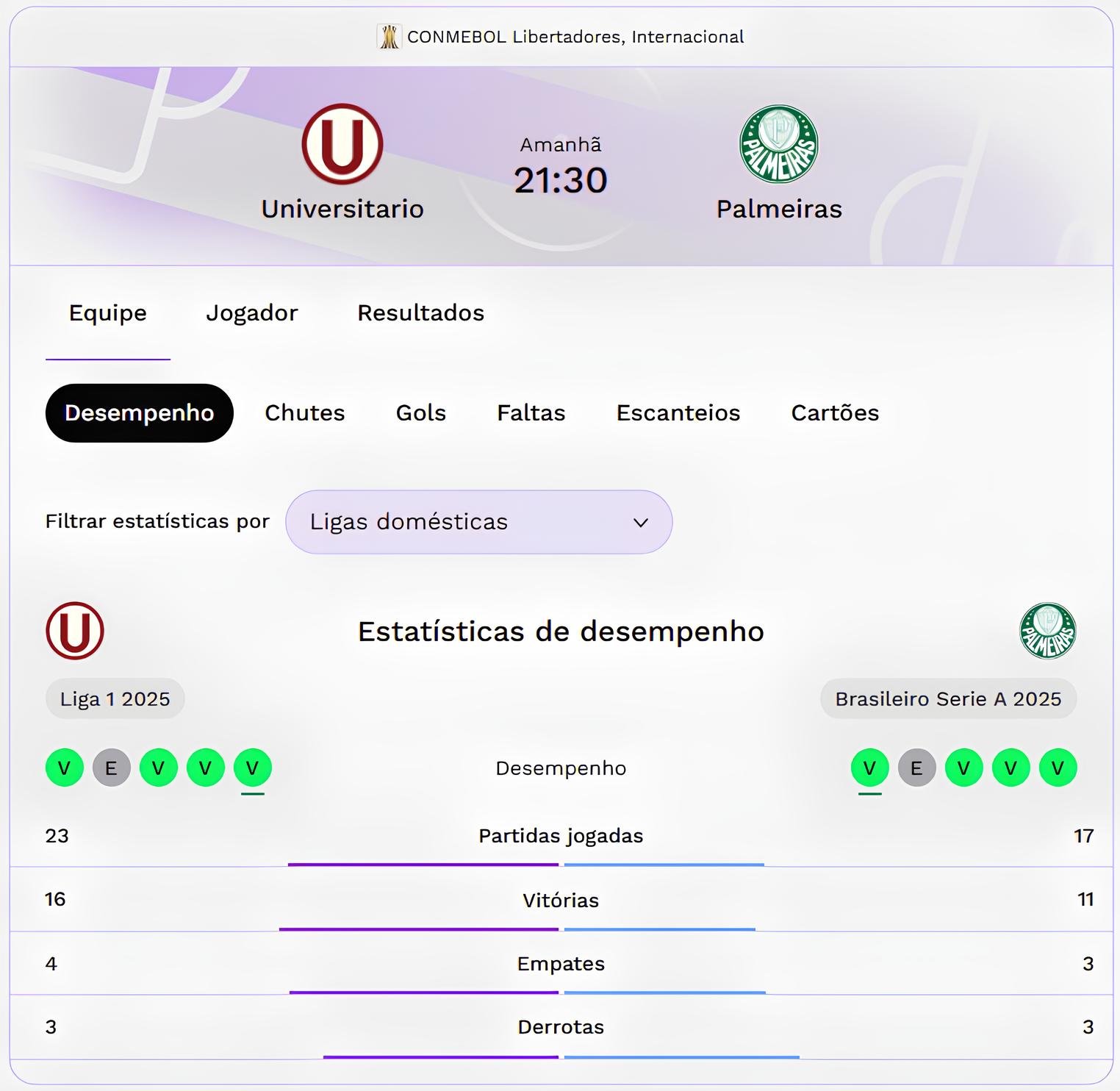 1. Entendendo o Jogo: Universitario x Palmeiras